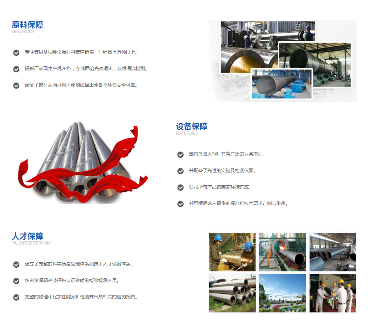 山東鑫盛鑫鋼鐵有限公司是一家專業(yè)銷售:無縫鋼管,合金管,異型管,精密管,圓鋼,軸承鋼的大型無縫鋼管廠廠家??啥ㄗ?多種規(guī)格,多種型號的無縫鋼管。另常年兼營成都、包鋼、冶鋼、魯寶、鞍鋼、安陽、洪都、天津等幾大鋼廠的國產(chǎn)進(jìn)口的無縫鋼管、無縫管、流體鋼管、直縫焊管,經(jīng)營品種多、規(guī)格齊全,保質(zhì)保量,常年庫存保有量7000噸以上。所售產(chǎn)品均執(zhí)行國家標(biāo)準(zhǔn),適用于工程、煤礦、紡織、電力、鍋爐、機(jī)械、軍工等各個領(lǐng)域。公司始終堅持“公正、客觀、科學(xué)、誠信”的經(jīng)營原則,重合同、守信譽(yù)、保質(zhì)保量、按期交貨”。多年來公司憑借良好的信譽(yù)、優(yōu)質(zhì)的產(chǎn)品、低廉的價格享譽(yù)全國30多個省、市、自治區(qū),產(chǎn)品出口歐洲、南美等十多個國家,深得用戶信賴! 常備材質(zhì):20#、45#、20G、16Mn、27SiMn、12Cr1MoVG、15CrMo、T91、10CrMo910、STFA25(P5)、STFA26(P9)、P11、P12、A335P91、A335P92、WB36[15NiCuMoNB5]、鋼研102(12Cr2MoWVTiB)等。執(zhí)行標(biāo)準(zhǔn)為:結(jié)構(gòu)管GB8162-1999、流體管GB8163-1999、低中壓鍋爐管GB3087-1999、液壓支架管GB17396-1999、高壓鍋爐管GB...